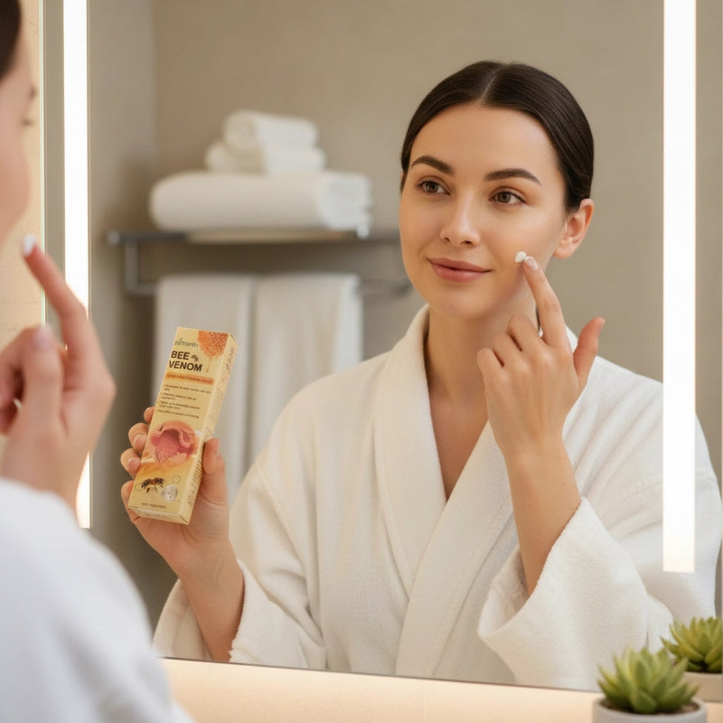 Despídete de las imperfecciones y revela una piel suave y radiante al instante. Nuestra crema de veneno de abeja es tu secreto para un cutis impecable, ¡sin esperas!